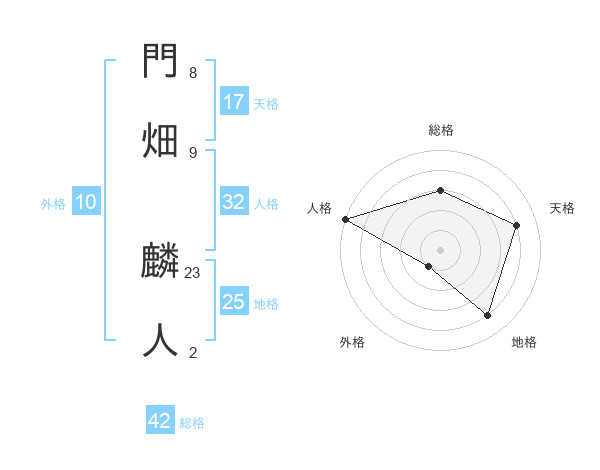 門畑 麟人さんを姓名の画数から五運を鑑定
