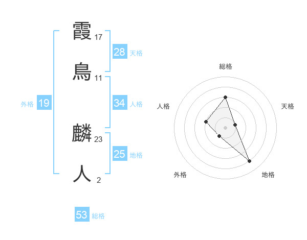 霞鳥 麟人さんの総格は53画の3点!