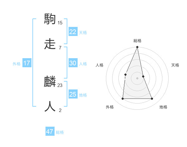 駒走 麟人さんを姓名の画数から五運を鑑定