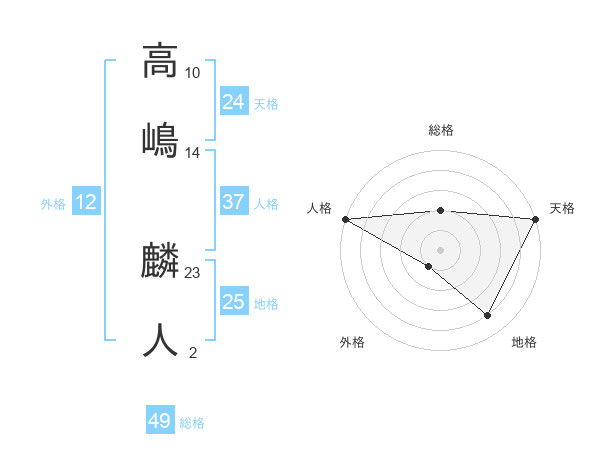 高嶋 麟人さんを姓名の画数から五運を鑑定