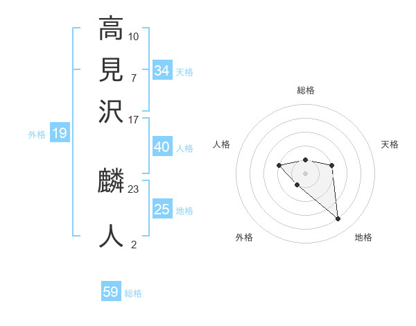 高見沢 麟人さんを姓名の画数から五運を鑑定