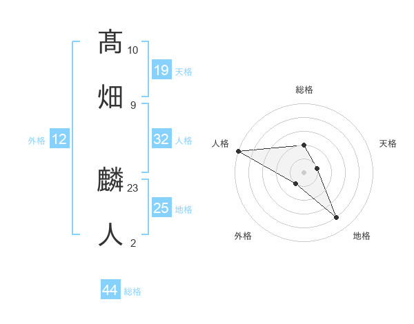 髙畑 麟人さんを姓名の画数から五運を鑑定