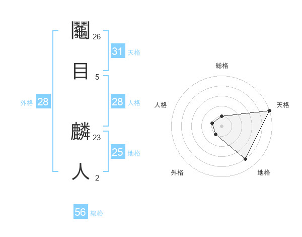 鬮目 麟人さんを姓名の画数から五運を鑑定