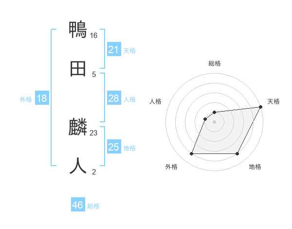 鴨田 麟人さんを姓名の画数から五運を鑑定