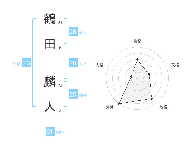 鶴田 麟人さんを姓名の画数から五運を鑑定