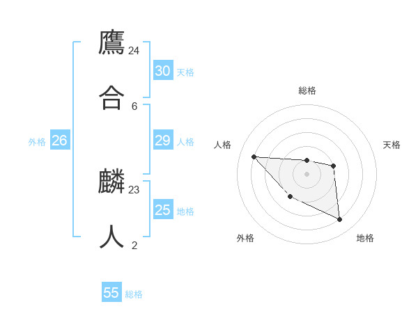 鷹合 麟人さんの総格は55画の1点!