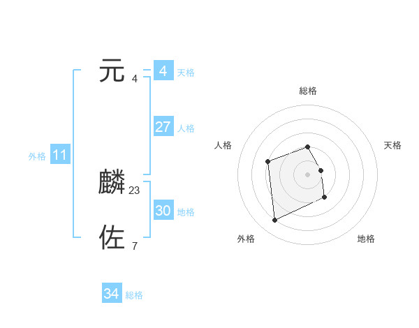 元 麟佐さんの外格は11画の4点!