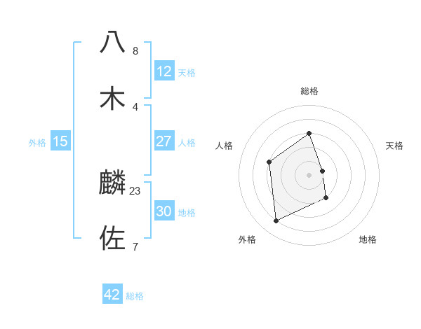 八木 麟佐さんを姓名の画数から五運を鑑定
