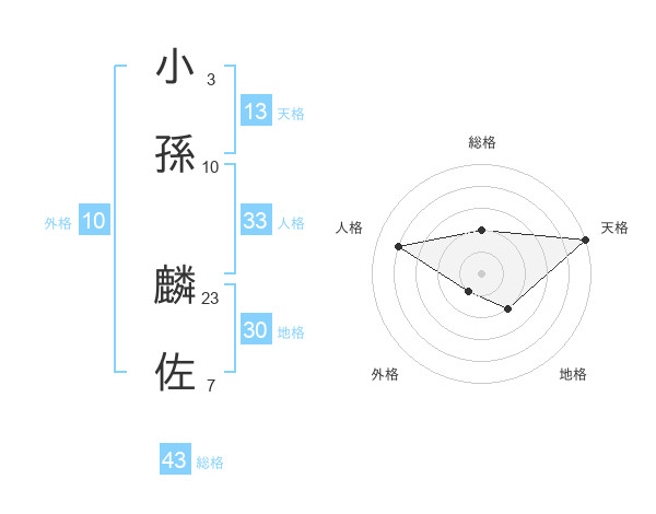小孫 麟佐さんを姓名の画数から五運を鑑定