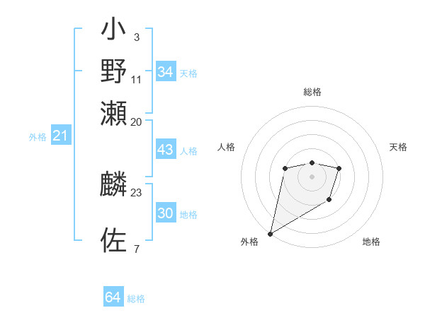 小野瀬 麟佐さんを姓名の画数から五運を鑑定