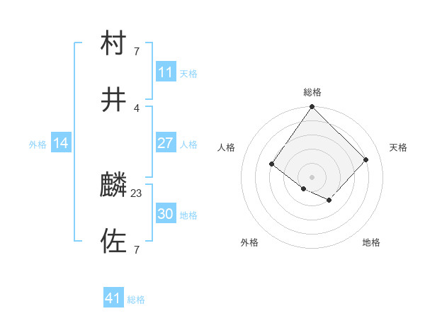 村井 麟佐さんの総格は41画の5点!