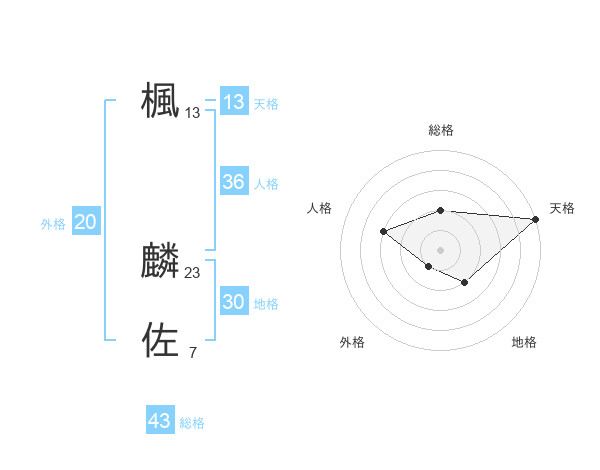 楓 麟佐さんを姓名の画数から五運を鑑定