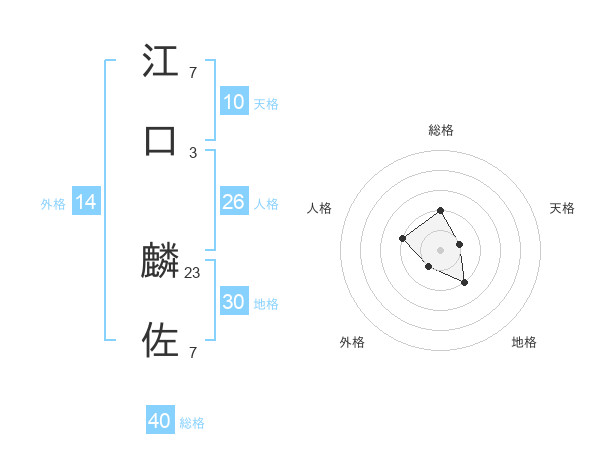 江口 麟佐さんを姓名の画数から五運を鑑定