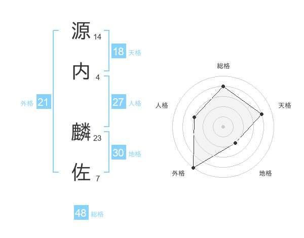 源内 麟佐さんの総格は48画の4点!