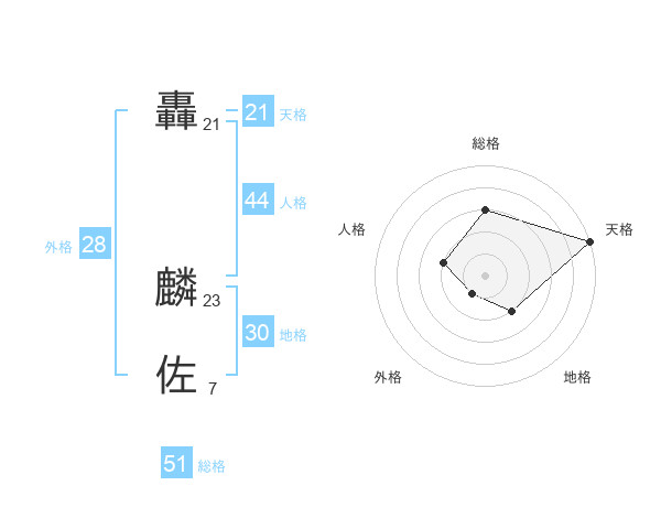 轟 麟佐さんを姓名の画数から五運を鑑定