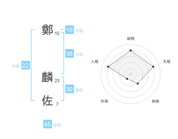 鄭 麟佐さんの総格は45画の4点!