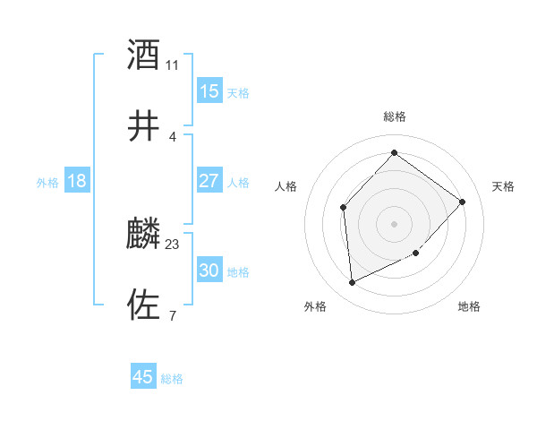 酒井 麟佐さんを姓名の画数から五運を鑑定