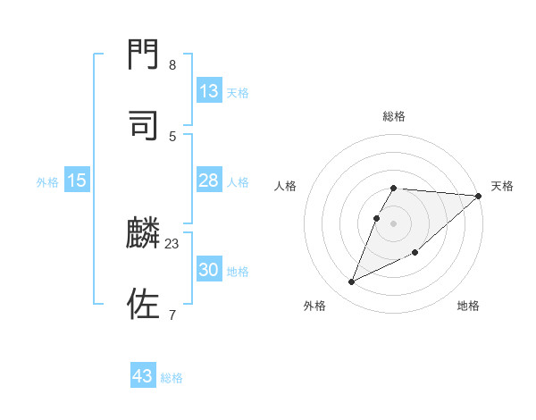 門司 麟佐さんを姓名の画数から五運を鑑定