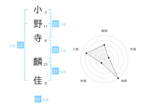 小野寺 麟佳さんの総格は51画の3点!