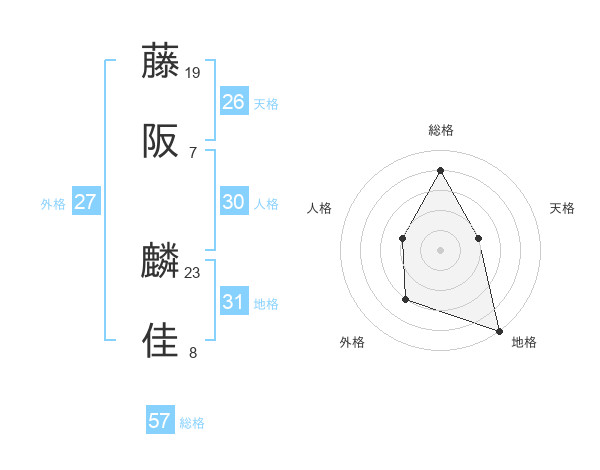 藤阪 麟佳さんの総格は57画の4点!
