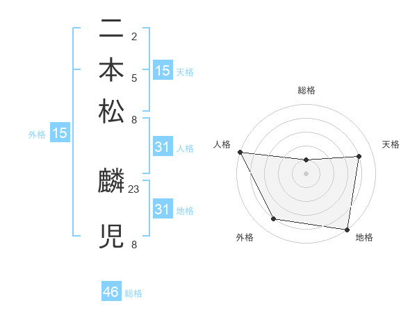 二本松 麟児さんの天格は15画の4点!