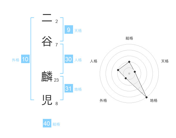 二谷 麟児さんの総格は40画の2点!