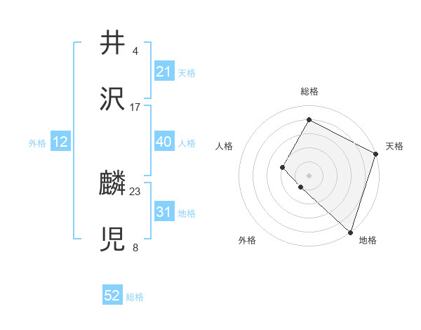 井沢 麟児さんの総格は52画の4点!