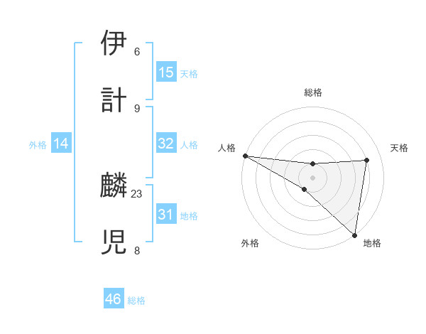 伊計 麟児さんの総格は46画の1点!