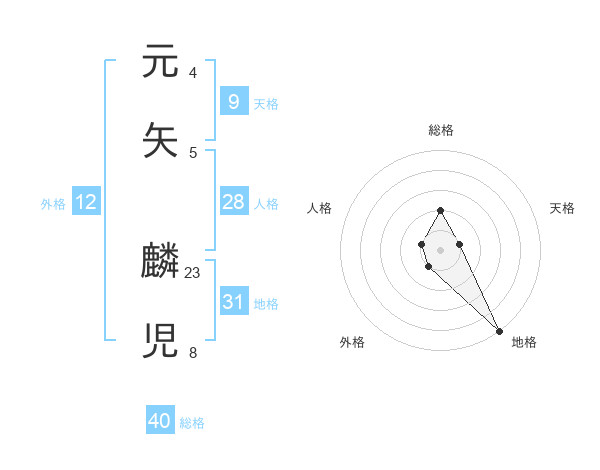 元矢 麟児さんの総格は40画の2点!