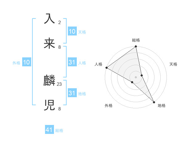 入来 麟児さんの総格は41画の5点!