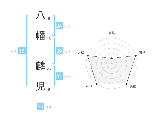 八幡 麟児さんの天格は24画の5点!