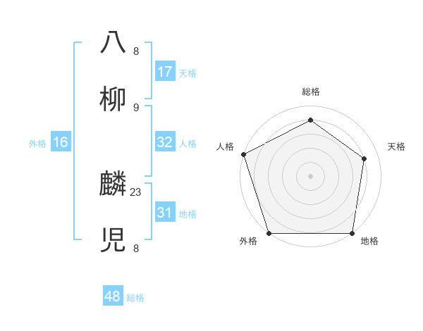 八柳 麟児さんの天格は17画の4点!