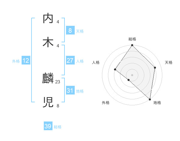 内木 麟児さんの総格は39画の5点!