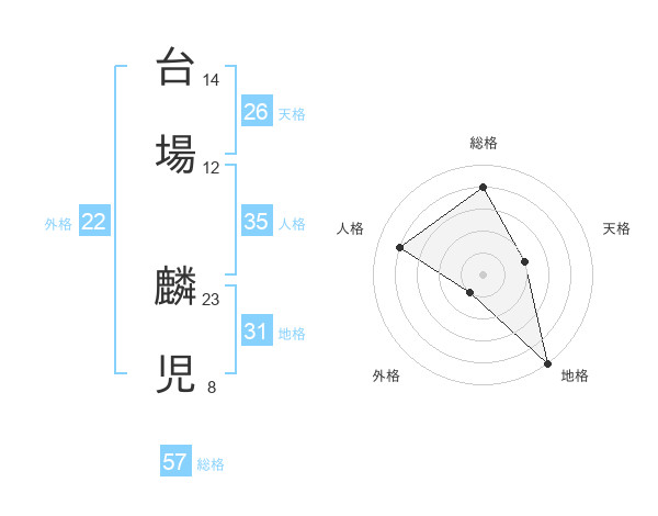 台場 麟児さんの総格は57画の4点!