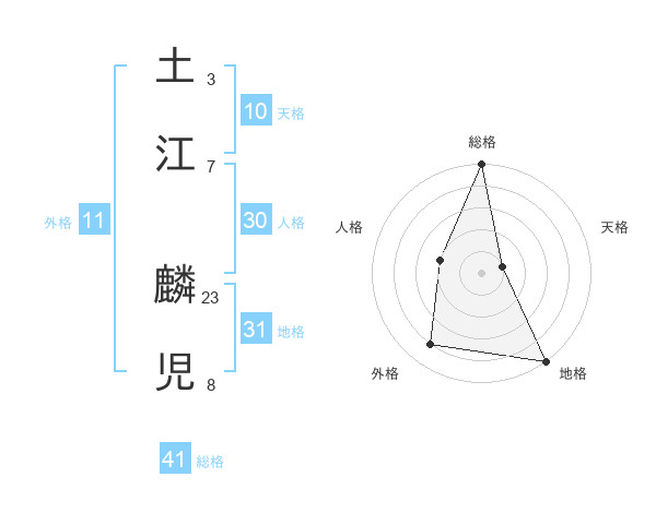 土江 麟児さんの総格は41画の5点!