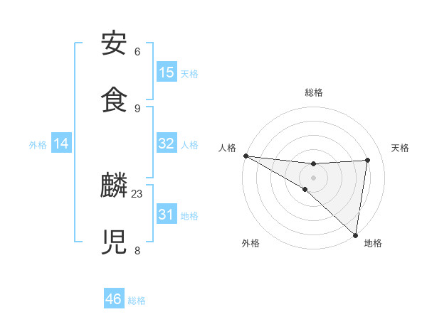 安食 麟児さんの総格は46画の1点!