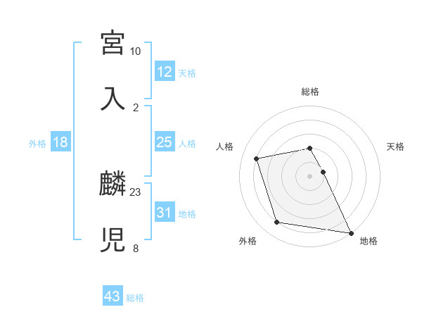 宮入 麟児さんを姓名の画数から五運を鑑定