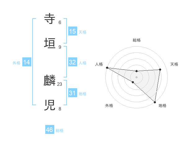 寺垣 麟児さんの天格は15画の4点!