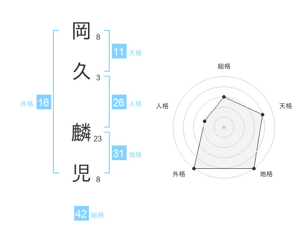 岡久 麟児さんを姓名の画数から五運を鑑定