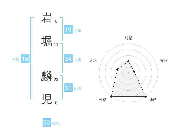 岩堀 麟児さんの総格は50画の2点!