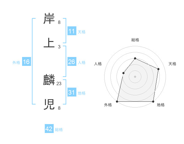 岸上 麟児さんを姓名の画数から五運を鑑定