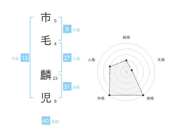 市毛 麟児さんの総格は40画の2点!