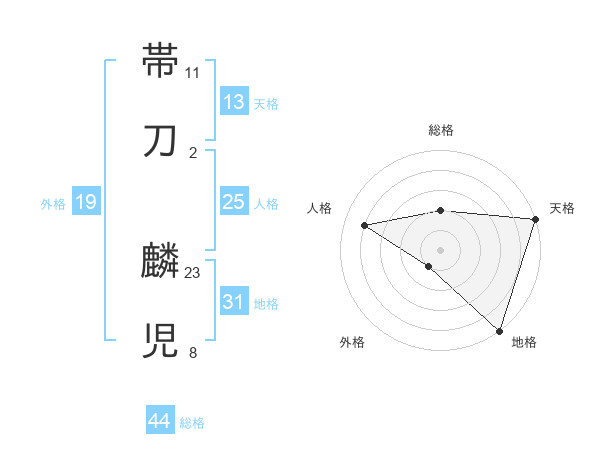 帯刀 麟児さんの総格は44画の2点!