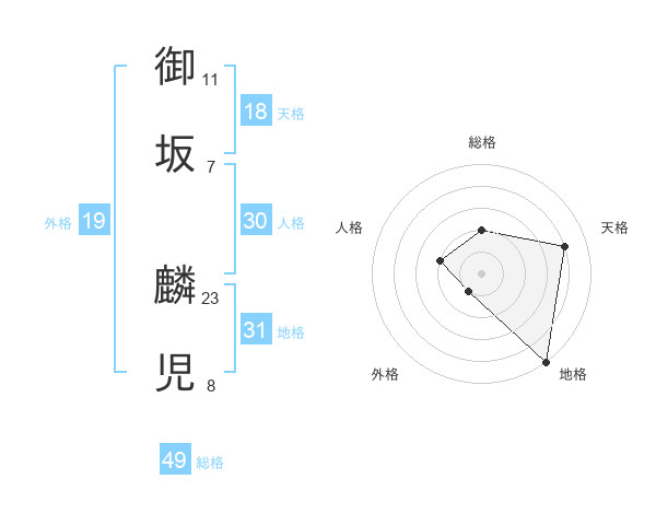 御坂 麟児さんの総格は49画の2点!