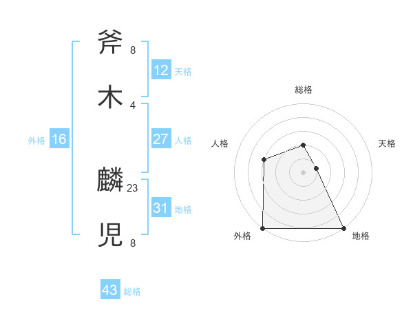 斧木 麟児さんを姓名の画数から五運を鑑定