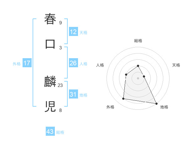 春口 麟児さんの総格は43画の2点!