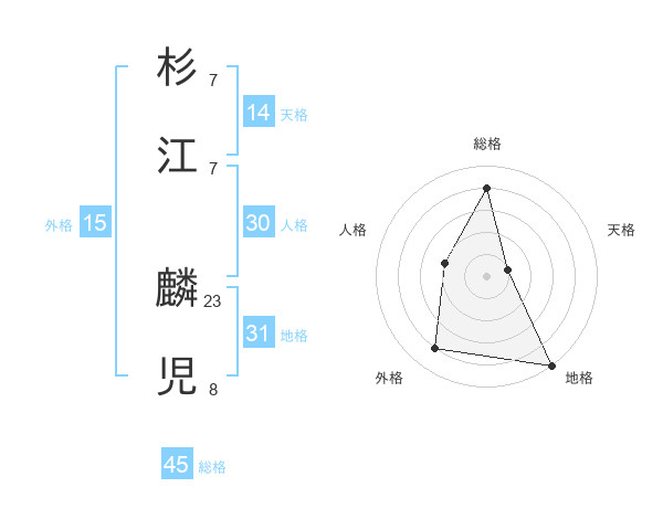杉江 麟児さんの総格は45画の4点!