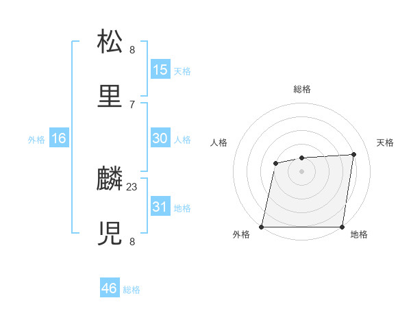 松里 麟児さんの総格は46画の1点!