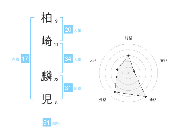 柏崎 麟児さんの総格は51画の3点!
