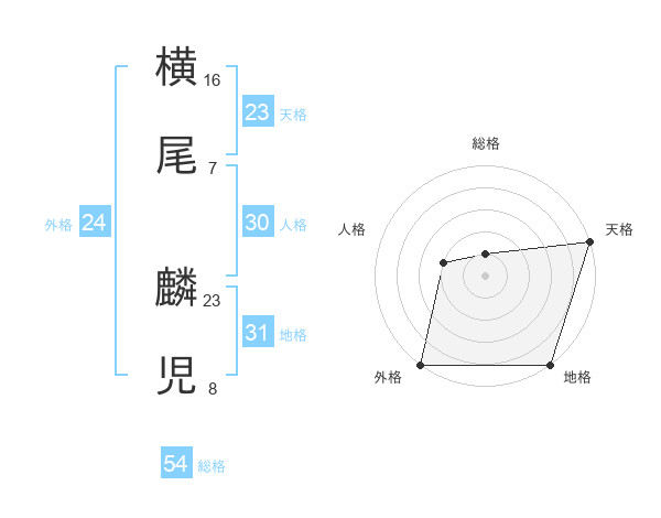 横尾 麟児さんの総格は54画の1点!